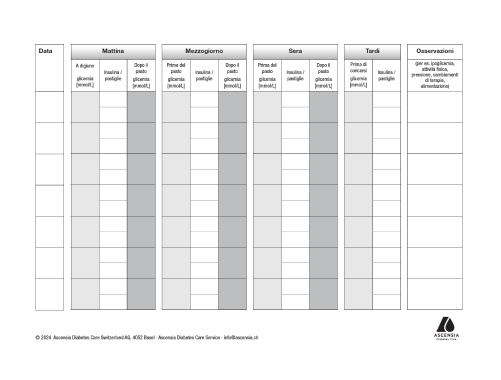 Scarichi e stampi il nostro diario della glicemia cartaceo in formato PDF.